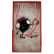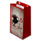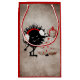 Customizable funny Christmas gift bag with a dark textured illustration with an evil black bug who gives a Christmas present to someone, on dark vintage textured background. Next to the evil character there is a Christmas tree.