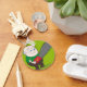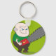 This is a cartoon illustration of an older bold man who's looking kinda angry at his chainsaw. Let's hope he's only planning on cutting down a tree and nothing more evil!