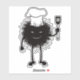 Funny cooking sticker with a hairy evil bug - chef. The evil character who wears a chef's hat is holding a cooking spatula with and evil grin showing its sharp teeth. This fun illustration has an intense orange textured background colour associated with appetite and food.. It will appeal to a cook who likes gothic style.