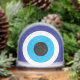Evil Eye Blue Mati personalized snow globe gift. Greek / Turkish symbol for luck and protection. Add your own custom text.