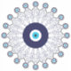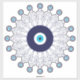 Patterned sticker of a circular mandala made of traditional navy blue, turquoise and white protective evil eye symbols