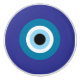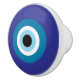 Blue and white ceramic knob with evil eye graphic. 1.5" wide. Fits most 1.25" diameter holes.