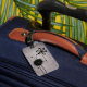 Funny personalized luggage tag with the Evil Flower Bug in its vintage reincarnation - grinning cartoon creature with sharp teeth holding a flower. It's evil and kind of cute. It loves flowers... loves eating them, in fact.