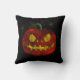 An evil Halloween pumpkin in red, yellow and green, on a black background