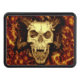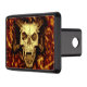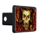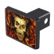 Evil Skull With Fangs Printed Hitch Cover. This awesome Hitch Cover features an evil looking skull with fangs. The entire graphic is engulfed in real looking fire.