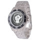 Has heft and feel of expensive stainless steel quartz watches. Good band with safety catch. I removed links, which is easy because engraved arrows show direction to push the linking pins. As always by this seller, the image (a railroad logo) is a perfect reproduction of my emailed image, and is precisely spaced and aligned.