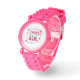 Une montre élégante rose avec un design sophistiqué et une touche artistique subtile.