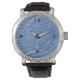 This unusual Men's watch features a blue water pattern. It's colours are shades of blue. The design conjures up the ocean or river. Perhaps it's for a sailor or a fisherman? The numbers are big to make it easy to read. Only you know if it's right for you. Look for the other products in this collection. Brought to you by Oregon Tile maker Fay Jones Day.