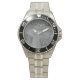 Has heft and feel of expensive stainless steel quartz watches. Good band with safety catch.  I removed links, which is easy because engraved arrows show direction to push the linking pins. As always by this seller, the image (a railroad logo) is a perfect reproduction of my emailed image, and is precisely spaced and aligned.