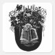 Cute bookplate or sticker art for personal books or school books. A tiny mouse sits atop a book as flowers burst forth above.