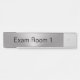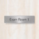 You can edit the black display text to show a custom message. (Shown: Exam Room 1) The faux silver background is not made of metal.