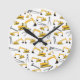 Excavator Construction Trucks and Tools Pattern Round Clock