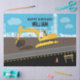 Cute illustration of an excavator construction truck vehicle on a construction site. The perfect design for truck and heavy machinery enthusiasts. Ideal Christmas present, birthday gift, nursery décor, kids room art, home décor or back to school. Customize the name and make it your own.