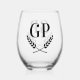 Exclusive wine glasses personalized with name initials. Elegant typography monogram logo with classy wreath design.