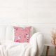 Un coussin rose avec les caniches de exécution dans une conception de Noël.