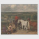 This design features a painting by the English artist John Frederick Herring Sr. (1795–1865). It shows a traditional rural scene with horses being ridden across a dirt path. The horses are owned by the King of England. There are trees growing on the grass in the distance. The horses are of different colours: one of the horse has white hair while the other horses have coats of different shades of brown. Two elegant women are seated beside the path.