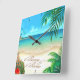 This serene and peaceful wall clock depicts a beautiful tropical beach scene with palm leaves, tropical bird of paradise flowers and a small grass hut in the distance. To have me draw your names in the sand, please contact me BEFORE YOU PLACE YOUR ORDER or use the CUSTOMIZE IT button to delete the names altogether and personalize with other text. This design works well on both square & round shapes. Matching wedding invitations, envelopes, stickers, favour bags and more are available! For special requests or other items featuring this design, contact: cheryl@cheryldanielsart.com. "Exotic Beach" by Cheryl Daniels © 2015.