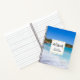 Spiral notebook with a photograph featuring a beach on the Greek island Crete. A beautiful tropical blue beach with foamy surf. Wonderful tranquil travel destination.