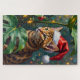 Exotic Bengal Cat Jungle Christmas Playtime Art Jigsaw Puzzle