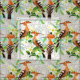 Birds | Pattern with exotic birds, tropical leaves and white flowers on a lace background. © and ® Bigstock® - All Rights Reserved.