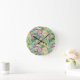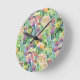 Exotic Blooming Watercolor Cacti Pattern Round Clock