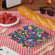 Great accent for an outdoor summer party. Bright colors, vibrant floral design