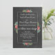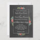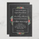 Unique Kauai Wedding card design featuring a black shape with a delicate silver frame, four tropical bouquets under it, all on a black textured background. It is impressive! Use Customize tool to add your info, change the fonts, colours. For more, visit my Tropical Garden Gold Foil Wedding Collection.