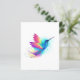 Bright, iridescent, exotic flying hummingbird on white background, painted over with multicolor, watercolor paint. Rainbow hummingbird.
