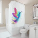 Bright, iridescent, exotic flying hummingbird on white background, painted over with multicolor, watercolor paint. Rainbow hummingbird.