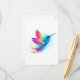 Bright, iridescent, exotic flying hummingbird on white background, painted over with multicolor, watercolor paint. Rainbow hummingbird.