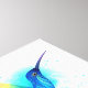Bright, iridescent, exotic flying hummingbird on white background, painted over with multicolor, watercolor paint. Rainbow hummingbird.