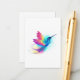 Bright, iridescent, exotic flying hummingbird on white background, painted over with multicolor, watercolor paint. Rainbow hummingbird.