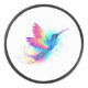 Bright, iridescent, exotic flying hummingbird on white background, painted over with multicolor, watercolor paint. Rainbow hummingbird.