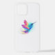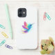 Bright, iridescent, exotic flying hummingbird on white background, painted over with multicolor, watercolor paint. Rainbow hummingbird.