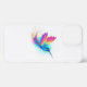 Bright, iridescent, exotic flying hummingbird on white background, painted over with multicolor, watercolor paint. Rainbow hummingbird.