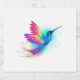 Bright, iridescent, exotic flying hummingbird on white background, painted over with multicolor, watercolor paint. Rainbow hummingbird.