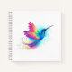 Bright, iridescent, exotic flying hummingbird on  white background, painted over with multicolor, watercolor paint. Rainbow hummingbird.
