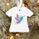 Bright, iridescent, exotic flying hummingbird on white background, painted over with multicolor, watercolor paint. Rainbow hummingbird.