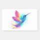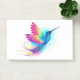 Bright, iridescent, exotic flying hummingbird on white background, painted over with multicolor, watercolor paint. Rainbow hummingbird.