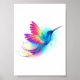 Bright, iridescent, exotic flying hummingbird on white background, painted over with multicolor, watercolor paint. Rainbow hummingbird.