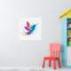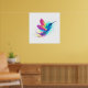Bright, iridescent, exotic flying hummingbird on white background, painted over with multicolor, watercolor paint. Rainbow hummingbird.