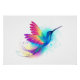 Bright, iridescent, exotic flying hummingbird on white background, painted over with multicolor, watercolor paint. Rainbow hummingbird.