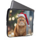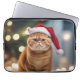 Cute exotic shorthair ginger cat wearing a Santa hat.