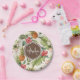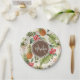 Exotic tropical pineapple floral pattern paper plates that can be personalized. Add your name and monogrammed initial to the dark brown rounded hexagon badge to make it uniquely yours. This is part of the Tropical Pineapple Floral Emperador Monogram Collection.