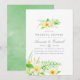 Sage green and white botanical tropical frangipanis wedding shower invitation cards designed to be quickly and easily customized to your event specifics.