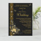 Exotic Wedding Black Gold Floral Butterfly Invitation