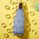Exotic White Mandala on Blue Background Bottle Cooler
