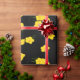 Bold tropical print gift wrap featuring bright yellow Hibiscus flowers on a black background.