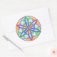 It's round. It's a sticker. It's beautiful. It's got Lemurian Blue artwork on it.