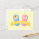Announce that you are expecting twins to your family and friends with this cute baby boy and girl wrapped up in blue and pink bundles respectively. White text in yellow banner reads "We are having Twins!" Background can be changed to colour of choice in customisation mode.